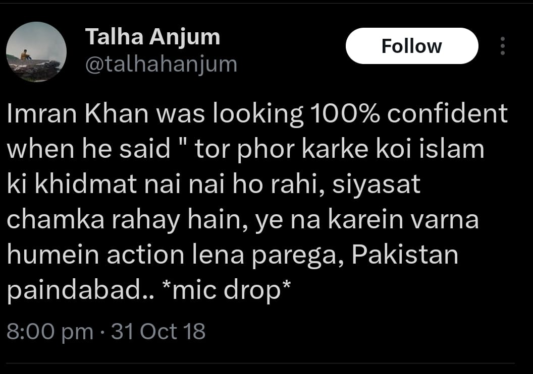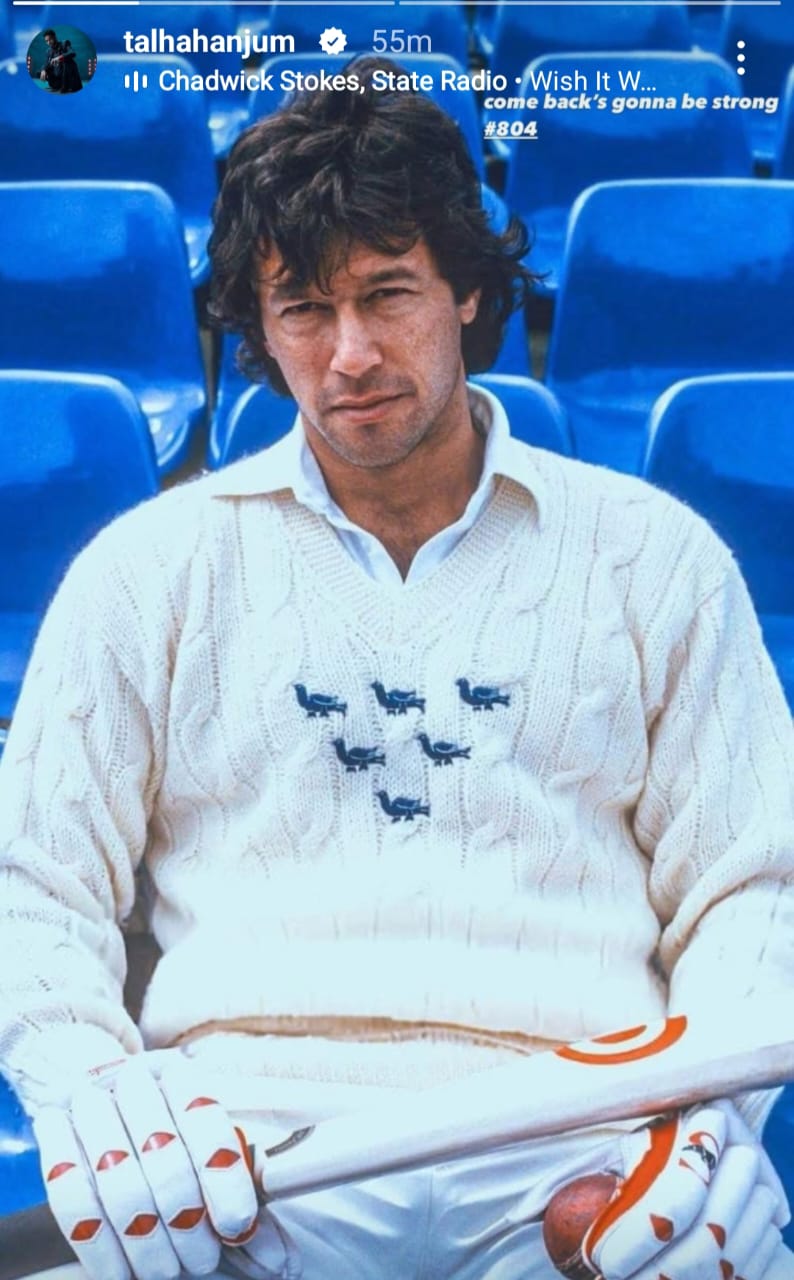 Rapper Talha Anjum of the popular band Young Stunners has shared an Instagram story featuring an old picture of Imran Khan, the former cricketer and prime minister of Pakistan.