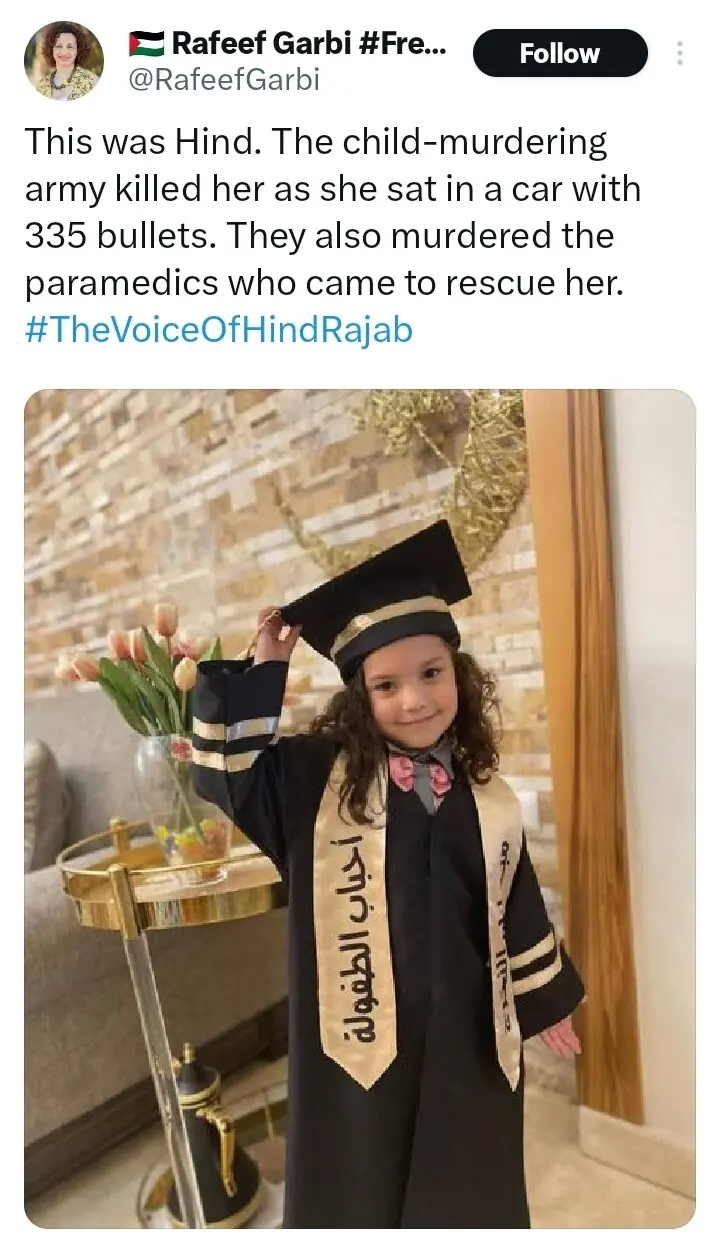 Rajab's mother hoped that the genocide in Gaza would end after the release of the film but the Israeli Defence Forces continue their killing spree in Gaza.