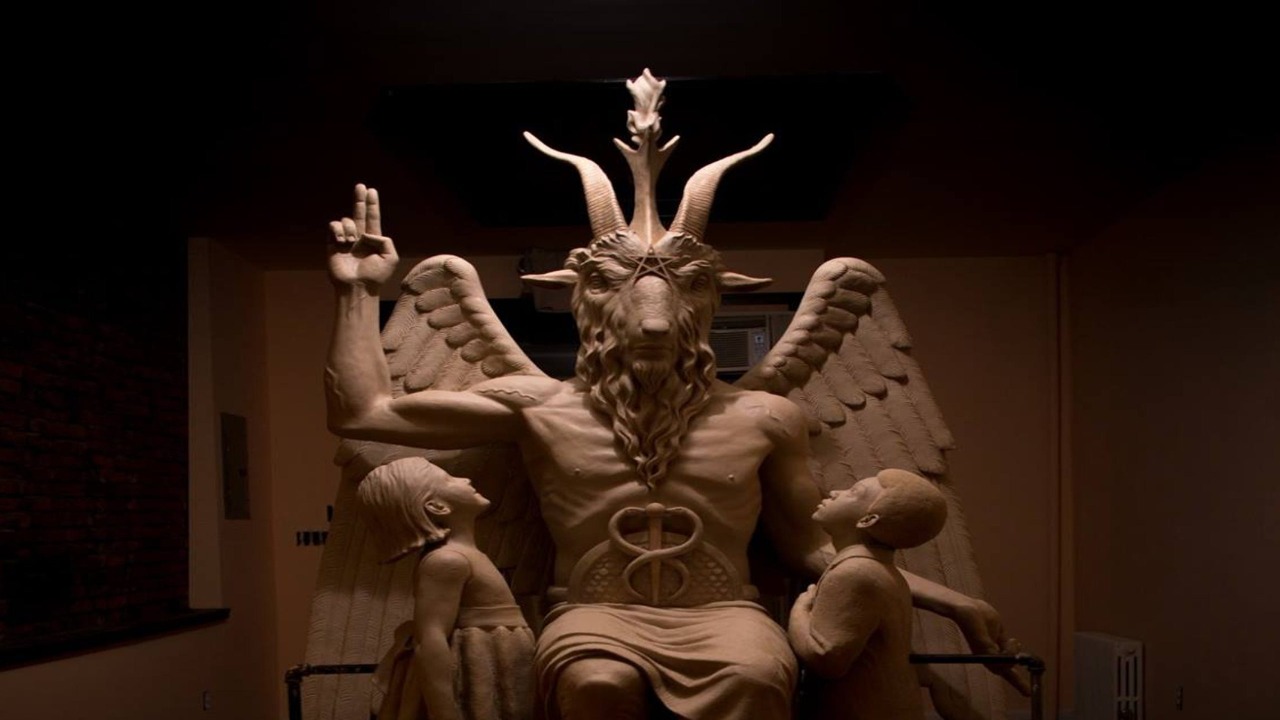 The Ring camera caught the suspect donning a red satanic goat mask with horns while holding a sign quoting the Bible verse ‘Revelation 20: 1-15’ as he stalked through the sideyard.
