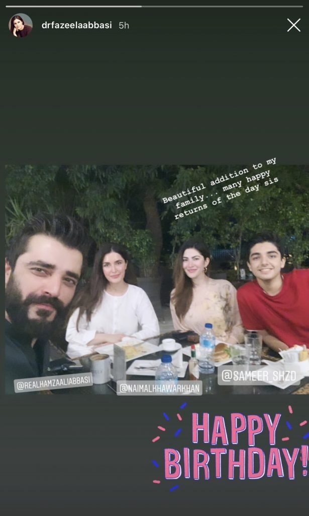 Hamza’s sister, Dr Fazeela Abbasi shared a picture from Naimal’s midnight celebrations with a cute caption.