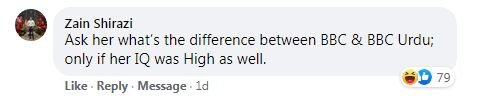 Followers were quick to point out her faux pas of thinking that BBC Urdu is a credible source of information compared to BBC News.
