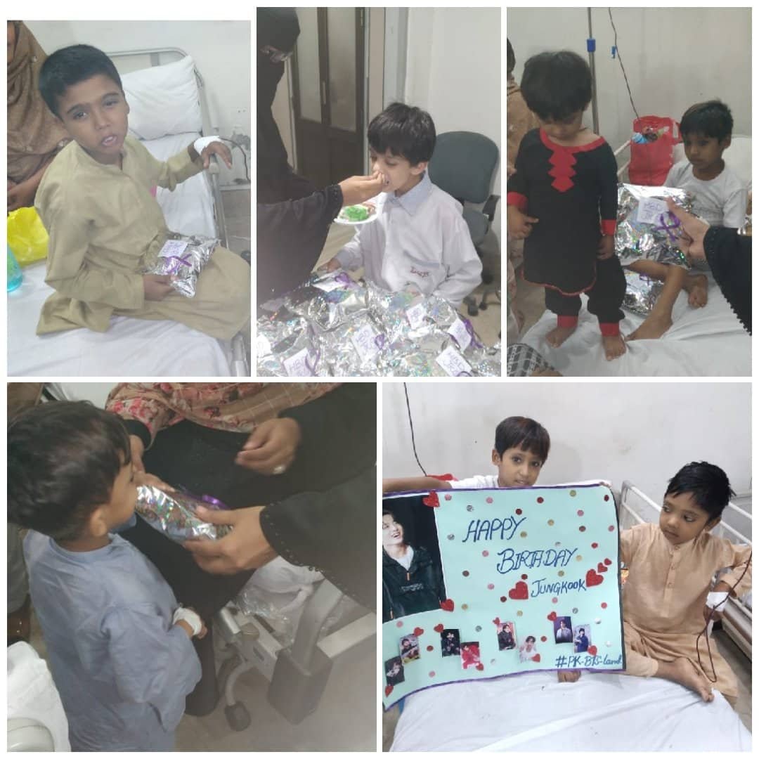 “This year in collaboration with #BTS_Pk_Streaming , I thought of doing something different, so I texted the Director and asked for his permission to organise a little activity to which he instantly agreed. So I saved my 1 month salary and decided to arrange a special meal for Thalassemia fighters and their families. My student ‘Haider’ who is also BTS ARMY member, prepared the BTS Themed Cake to celebrate Namkook’s (Namjoon & Jungkook of BTS) birthday . A kind ARMY friend *Saira from Twitter specially prepared ‘Namjoon & Jungkook day special cookies’ for patients. I’ve Donated Blood before Starting the celebration because I know the importance of blood donations. My Blood can save 1 life so what’s better then this to celebrate this special month?”