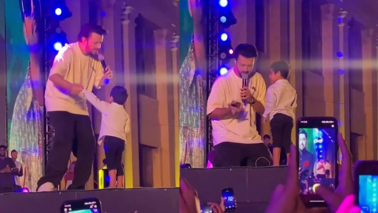 While singing “Tu Jaane Na,” the singer was approached on stage by a boy around five or six years old who wanted a selfie. The child’s phone appeared to be switched off, so Atif took it to help, only to find it locked. Kneeling down to the boy’s level, he smiled and asked, “Nahin khul raha, ab kya karein?”