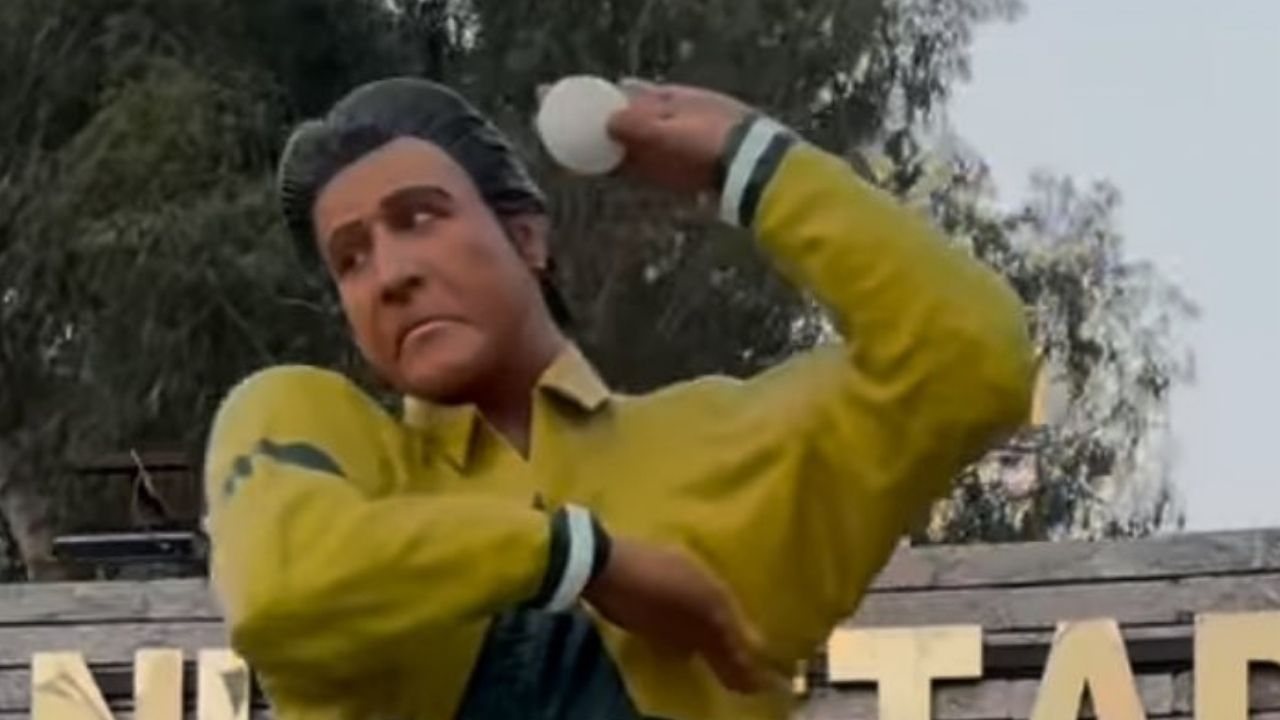 A statue of legendary Pakistani fast bowler Wasim Akram, recently installed outside the Niaz Stadium in Hyderabad, has sparked a wave of memes online. The statue, intended to honour the "Sultan of Swing," is being mocked by fans for its unrealistic resemblance to the former cricketer.