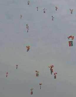 “Black Day ke mauqe par, Pakistan ke district Gujrat se gubbaron ke saath PTI ke jhanday bandh kar uray gaye, jo India mein ja kar utar gaye. Indian police gubbaron ko pakar kar tasveeren aur videos bana rahi hai (On the occasion of Black Day, PTI flags were tied to balloons and released from Pakistan’s Gujrat district. These balloons floated into India, where the Indian police captured them and are now taking pictures and making videos,” a user added.