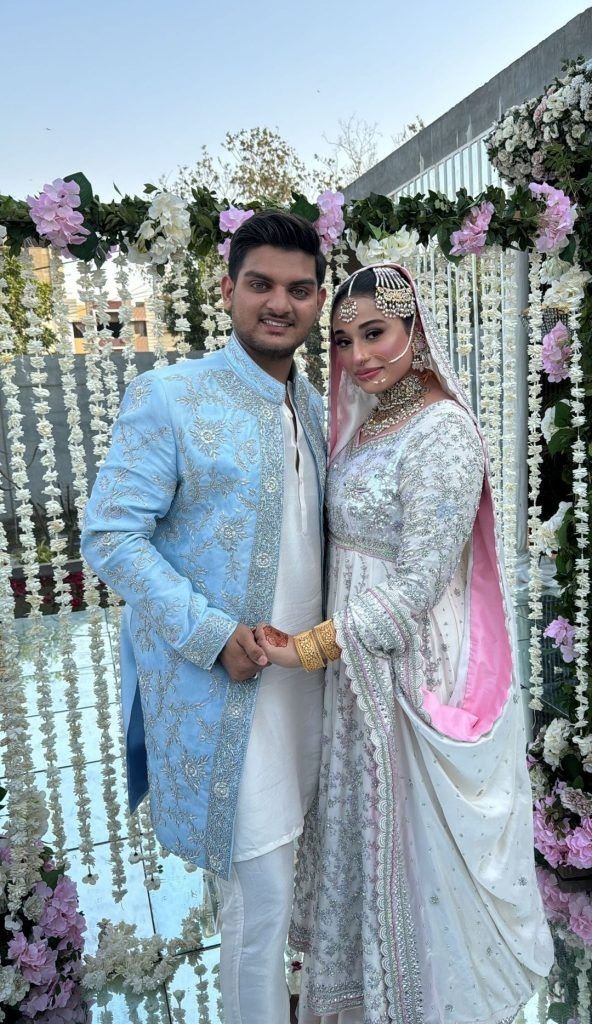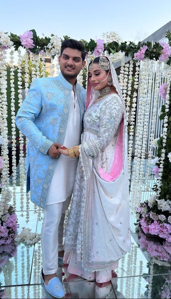 Maaz Khan, the brother of renowned Pakistani actresses Aiman Khan and Minal Khan, recently got married. Wedding celebrations started a few days ago with Dholki events. They had a lovely outdoor ceremony with family and friends.