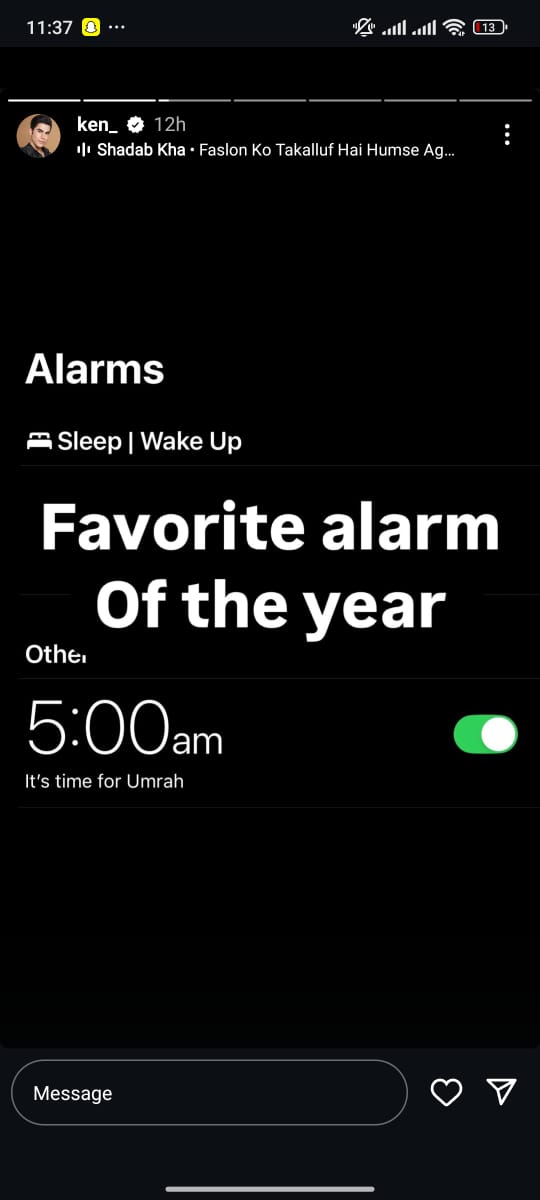 In his story, he wrote, "It's time for Umarh, my favorite alarm of the year!"