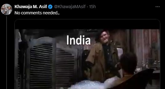 Defence Minister Khawaja Asif on Monday shared a clip from the classic 1966 movie “The Good, The Bad and the Ugly” on his official X (formerly Twitter) account with the caption “No comments needed”.