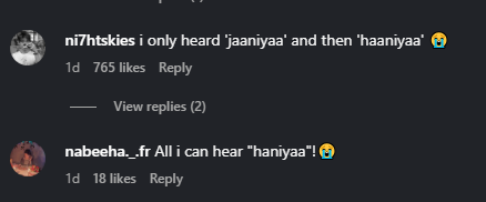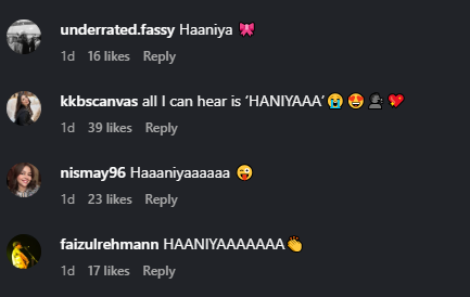 If you’ve heard Nusrat Fateh Ali’s original, Tere Bin, you know it says, “Janiya, Haniya” and that’s exactly the rendition that Asim was going for and Asim Azhar fans are here for it. The comment section was filled with hearts for Haniya aka Hania.