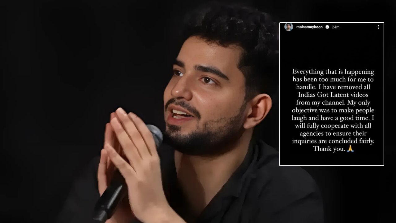 On Instagram, Samay Raina expressed his distress saying, "Everything that is happening has been too much for me to handle. I have removed all Indias Got Latent videos from my channel. My only objective was to make people laugh and have a good time."