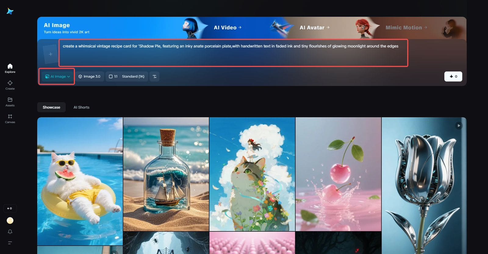 Once your prompt is ready, choose a style model, maybe something architectural or dreamlike, choose the aspect ratio required for layout- landscape for diagrams, portrait for pocket guides, and pick either 1k or 2k resolution based on detail. Click Dreamina’s icon to generate and let Dreamina manifest your inside-out vision.