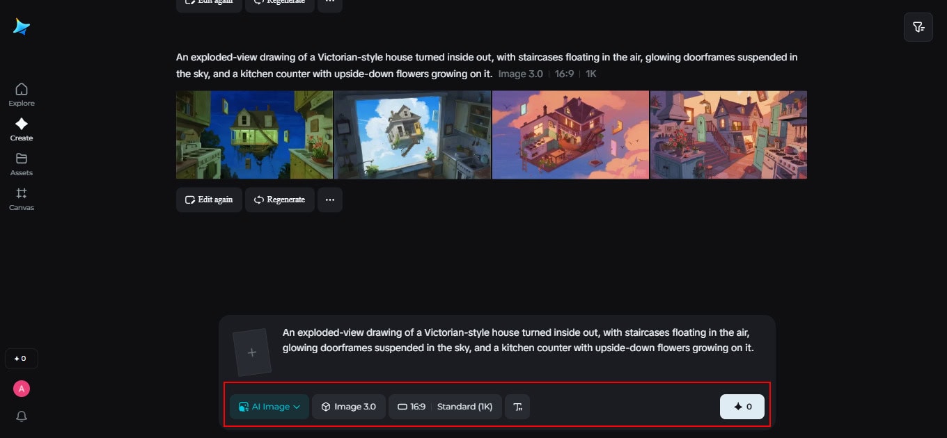 Open Dreamina’s interface. In the prompt box, write a description of your reimagined home in surreal, precise language. The more descriptive your prompt, the more useful (and strangely accurate) your emergency visual guide will prove to be. For instance: