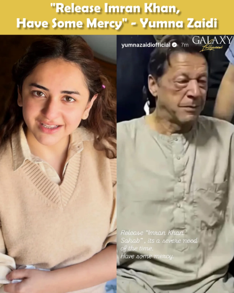 Actress Yumna Zaidi has added her voice to growing public concern over the health of jailed former prime minister Imran Khan, posting a direct appeal on her Instagram stories urging authorities to free him.